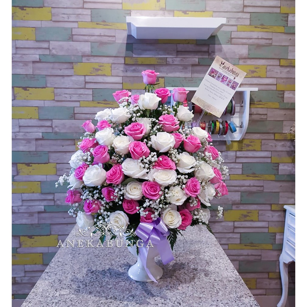 Jual Rangkaian Pot Bunga Hias Mawar Asli Pink Putih Fresh White Rose Flower Vase Meja Table Arrangement Kado Mothers Day Rangkaian Hari Ibu Valentine Day Ulang Tahun Graduation Gift Souvenir Ultah Pernikahan
